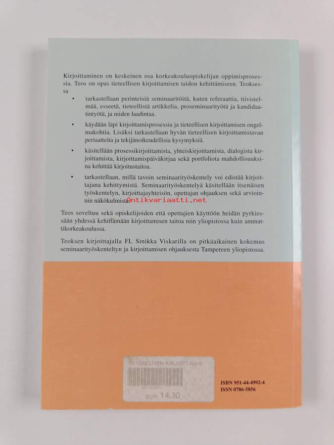 Sarja: Julkaisusarja / Tampereen yliopisto, kasvatustieteiden laitos. B n:o 17; Tampereen yliopisto. Kasvatustieteen laitos. B, Opetusmonisteet n:o 17Asiasanat: kirjoittaminen, tieteellinen kirjoittaminen, julkaisun laadinnan oppaat, opinnäytteet, oppaat (teokset)