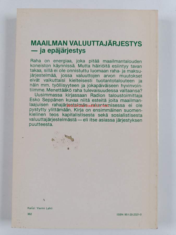 Hyvä. Tarkempi kuntoluokka: K3+ ; Hieman nuhruisuutta kansissa, selkämyksessä hieman vinoutta, takana hintalapun jäämää