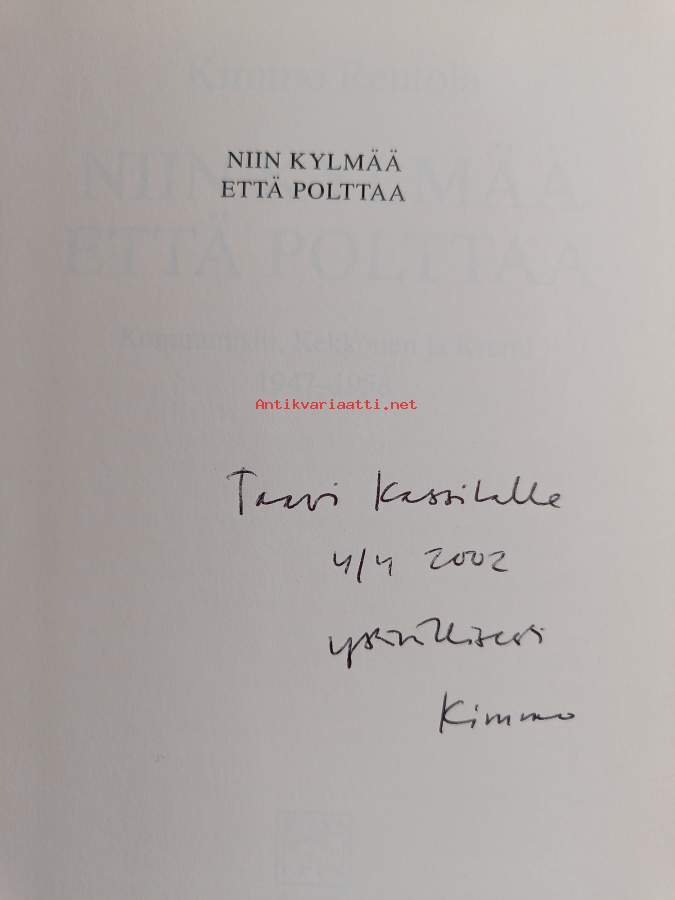 Niin kylmää että polttaa : kommunistit, Kekkonen ja Kreml 1947-1958 (signeerattu, tekijän omiste)