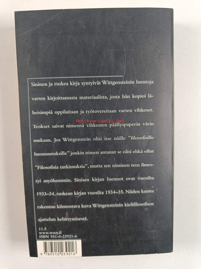 Sininen ja ruskea kirja : filosofisten tutkimusten esitutkimuksia (1933-1935)
