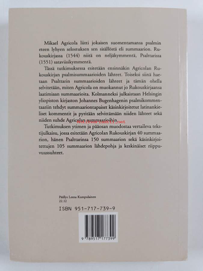 Sarja: Suomi 166Asiasanat: käännökset, psalmit, raamatunkäännökset, kommentaarit