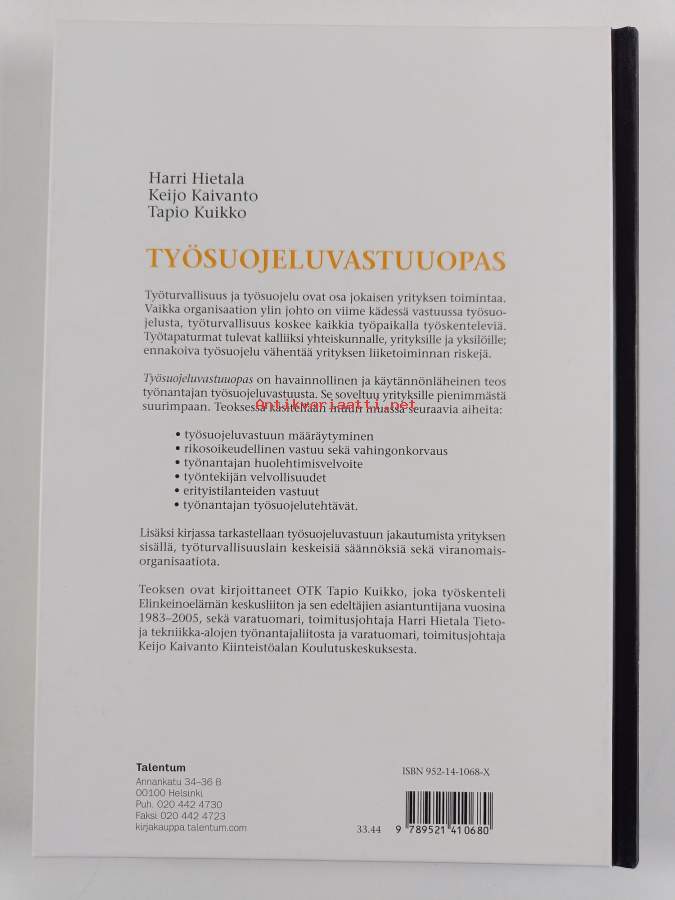 Muu(t) tekijä(t): Keijo Kaivanto, Tapio KuikkoAsiasanat: ennaltaehkäisy, lainsäädäntö, vastuu, työturvallisuus, työsuojelu, työtapaturmat, EU-direktiivit