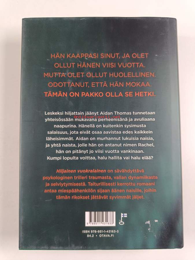 Muu(t) tekijä(t): Jussi Tuomas KiviAlkuteos: The quiet tenantAsiasanat: naiset, vangit, selviytyminen, sarjamurhaajat, miehet, vankeus, traumat, lesket, pelko, sieppaukset, muutto, salaisuudet, alistus (vallankäyttö)