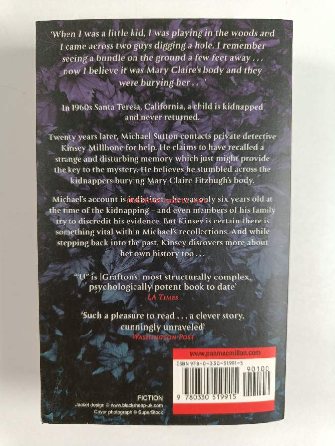 Sarja: A Kinsey Millhone mysteryAsiasanat: naiset, sieppaukset, kadonneet, rikoksentorjunta, yksityisetsivät
