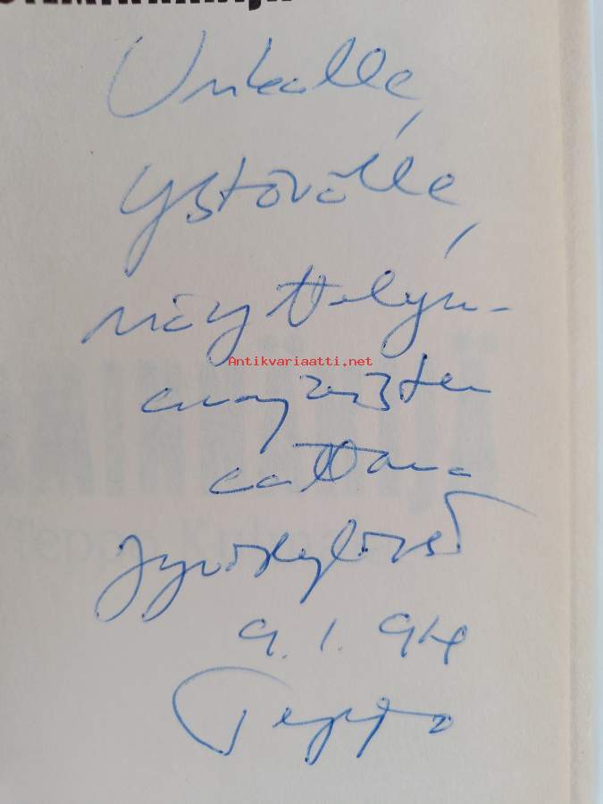 Hyvä. Pienoista tahraisuutta kansissa, pienoista kolhua kansissa, hieman kulumaa. tekijän signeeraama omiste