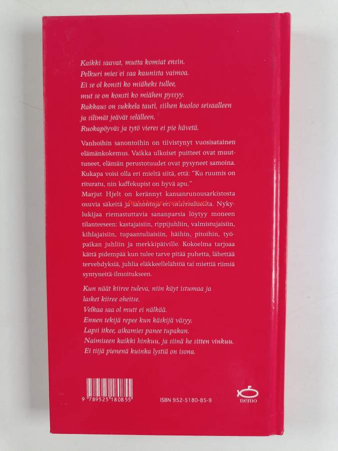 Muu(t) tekijä(t): Marjut HjeltMerkinnät: omistajamerkintäAsiasanat: kansanperinne, kansanrunous, sananlaskut, sananparret
