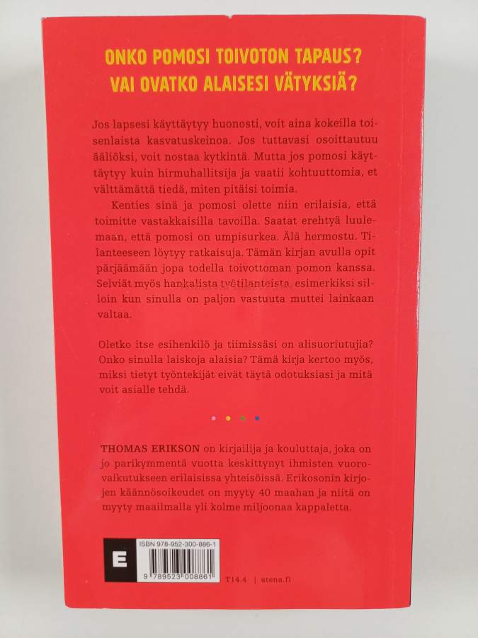 Muu(t) tekijä(t): Tiina OhinmaaAlkuteos: Omgiven av dåliga cheferAsiasanat: johtaminen, johtajat, johtajuus, luonteenpiirteet, työelämä, persoonallisuus, sosiaalinen vuorovaikutus, esimiehet, persoonallisuuden piirteet, typologiat, alaiset, viestintätaidot, käyttäytymismallit, työyhteisötaidot, esimies-alaissuhde