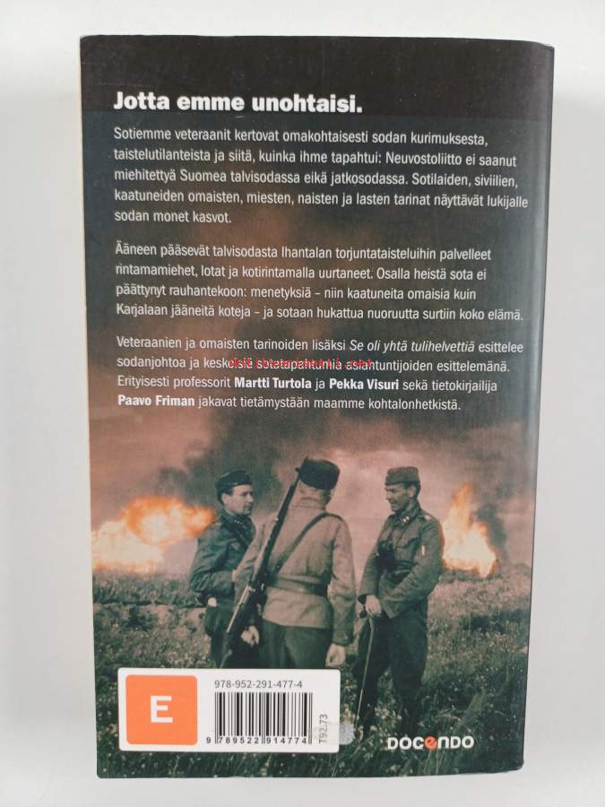 Se oli yhtä tulihelvettiä - Talvi- ja jatkosodan kasvot, 2018. Ääneen pääsevät talvisodasta Ihantalan torjuntaisteluihin osallistuneet, lotat ja kotirintamaväki.