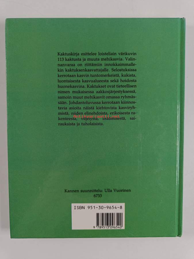 Muu(t) tekijä(t): Tuula SyvänperäMerkinnät: omistajamerkintä (tarra)Alkuteos: Kakteen und andere SukkulentenAsiasanat: huonekasvit, kaktukset, mehikasvit