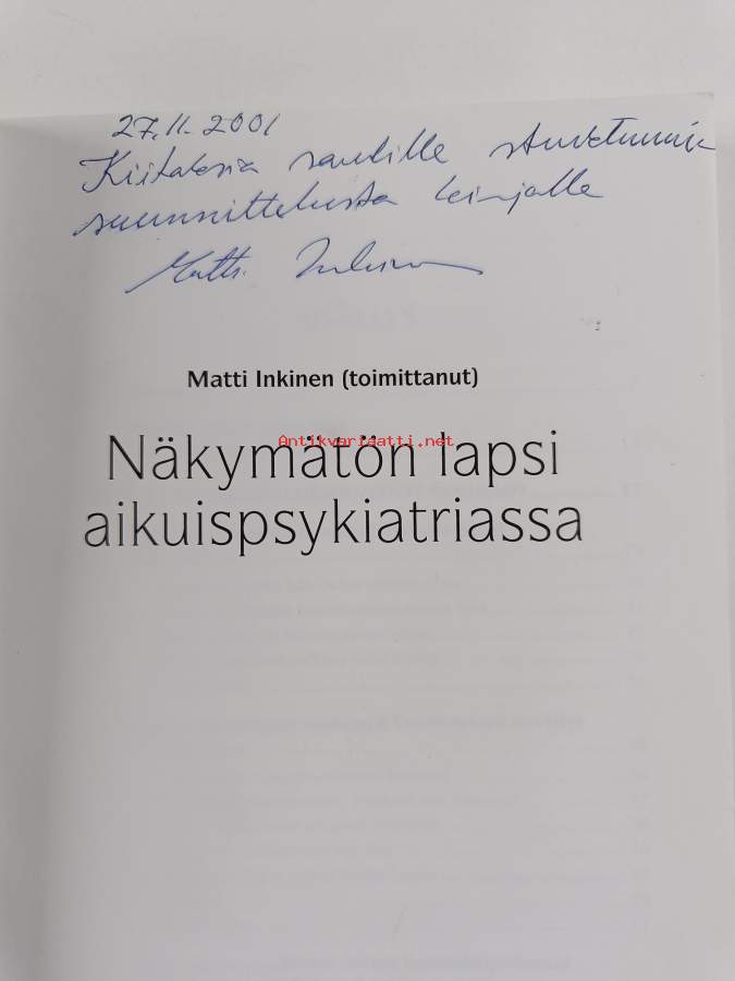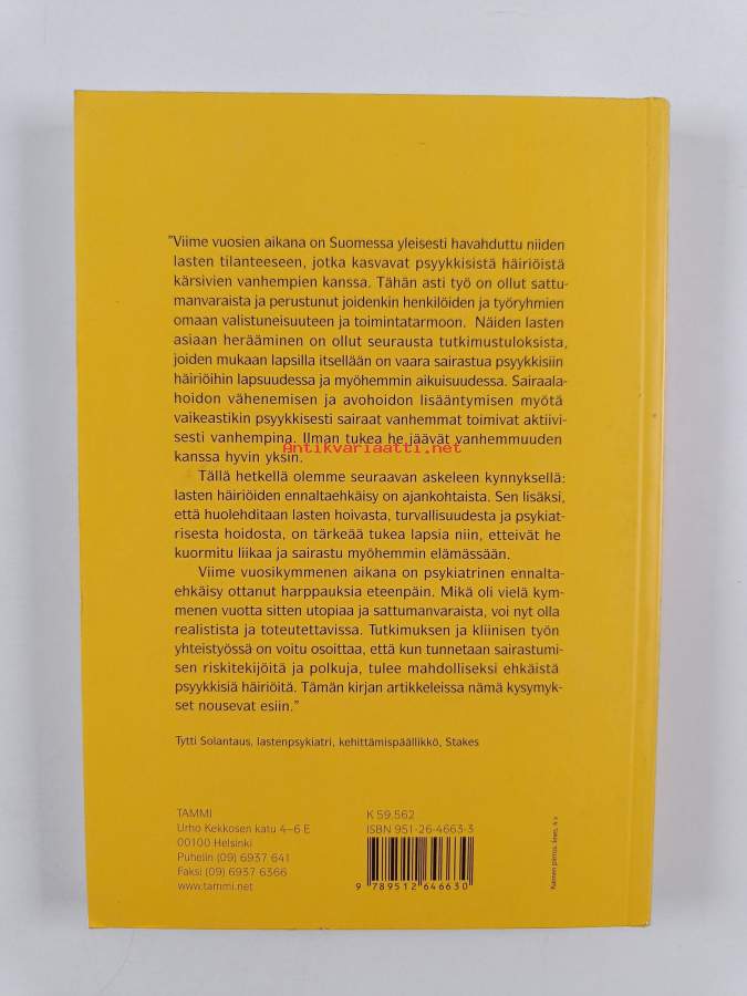 Muu(t) tekijä(t): Matti InkinenSarja: HygieiaAsiasanat: ennaltaehkäisy, itsehoito, vanhempi-lapsisuhde, perheneuvonta, kokemukset, lapset, vanhemmuus, perheet, mielenterveyshäiriöt, lasten kehitys, psykoterapia, vanhemmat, masennus, psykiatrinen hoito, psyykkisesti sairaat, psykiatriset potilaat, perheenjäsenet, perheterapia, lapsiperheet, vertaisryhmät, lapsettomuus, ehkäisevä mielenterveystyö, mielenterveystyö, tukeminen, perhetyö, psykiatria, psyykkiset vaikutukset, psyykkinen kuormittavuus, lastenpsykiatria, perheneuvolat, sosiaalinen tuki, riskitekijät, Mental Disorders, Mental Health, child welfare, Psychiatric Nursing, perhehoitotyö, Family, Social Support, mielenterveyden häiriöt, family health, Child of Impaired Parents, interventiohoito, perheleirit, depressio
