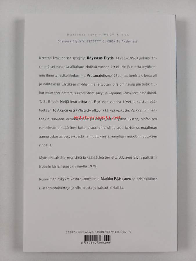 Sarja: Maailman runo / WSOY & NVLAlkuteos: To aksion esti