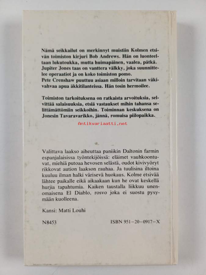 Muu(t) tekijä(t): Inkeri Pitkänen, Alfred HitchcockMerkinnät: omistajamerkintä (leima)Sarja: Alfred Hitchcock ja kolme etsivää 8Alkuteos: Alfred Hitchcock and the three investigators in the mystery of moaning cave