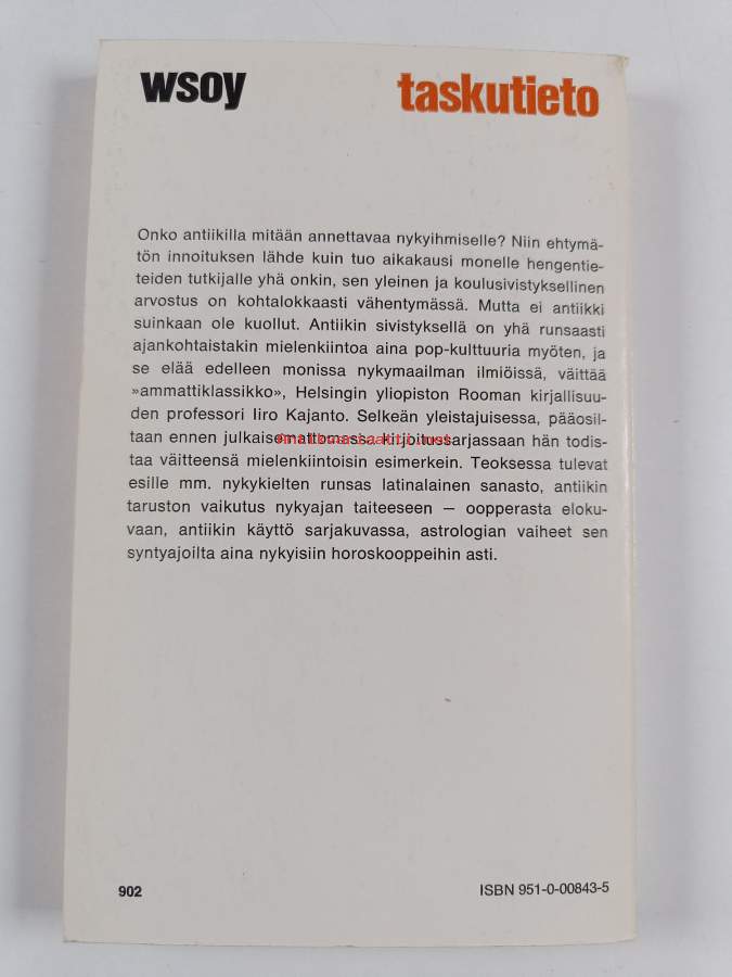 Hyvä. Tarkempi kuntoluokka: K3+ ; Hieman kulumaa kansissa, selkämyksessä aavistus vinoutta