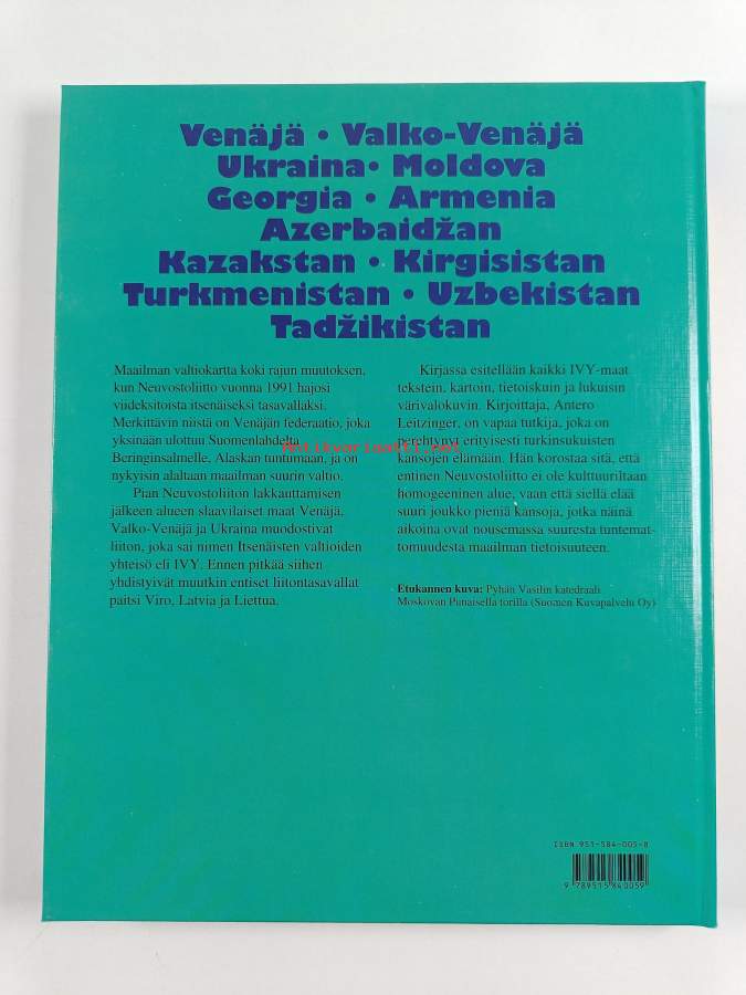 Koko nimi: Suomenlahdelta Beringinsalmelle : Venäjä, Valko-Venäjä, Ukraina, Moldova, Georgia, Armenia, Azerbaidžan, Kazakstan, Kirgisistan, Turkmenistan, Uzbekistan, TadžikistanMuu(t) tekijä(t): Rainer Palmunen, Kerkko Hakulinen ym.Sarja: Maailman maat ja kansatAsiasanat: IVY-maat