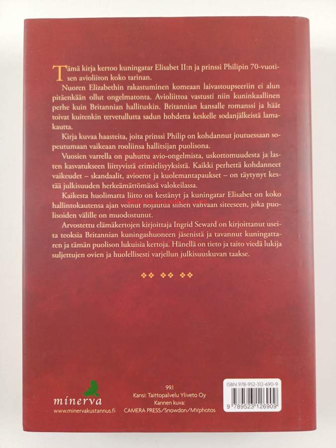 Muu(t) tekijä(t): Jade HaapasaloAlkuteos: My Husband and I - The Inside Story of 70 Years of the Royal MarriageAsiasanat: kuninkaalliset, kuningashuoneet, avioliitto, kuningattaret, puolisot, prinssit