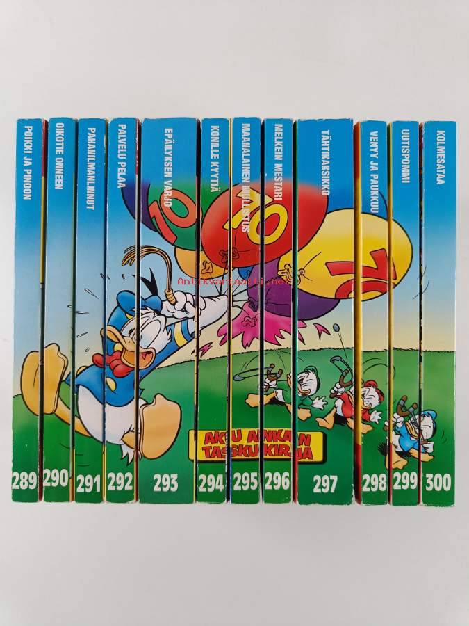 Hyvä. Tarkempi kuntoluokka: K3- ; Hieman taitejälkeä kansissa, hieman kulumaa, pienoista tahraisuutta. osassa 290 aivan pienoista läikkää, osan 297 etukannesta revennyt kulma, kaikkia kuntohuomautuksia ei esiinny kaikissa osissa