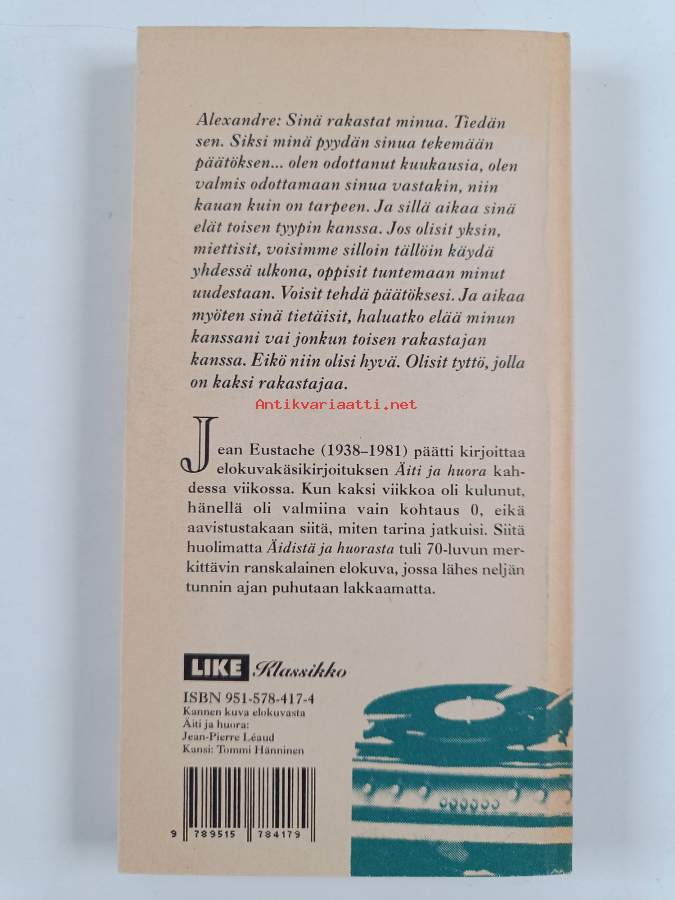 Muu(t) tekijä(t): Kristina HaatajaSarja: Like-klassikkoAlkuteos: La maman et la putainAsiasanat: käsikirjoitukset