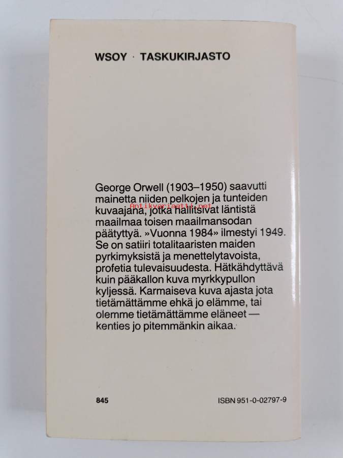 Muu(t) tekijä(t): Oiva (suom.) TalvitieMerkinnät: omistajamerkintäSarja: Taskukirjasto 57Alkuteos: Nineteen eighty-fourAsiasanat: klassikot, dystopiat