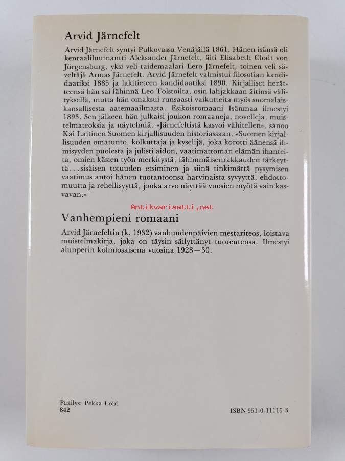 Arvid Järnefelt - Valitut teokset, 1953. Isänmaa/Elämän meri/Maaemon lapsia/Greeta ja hänen Herransa/Vanhempieni romaani -neljä lukua