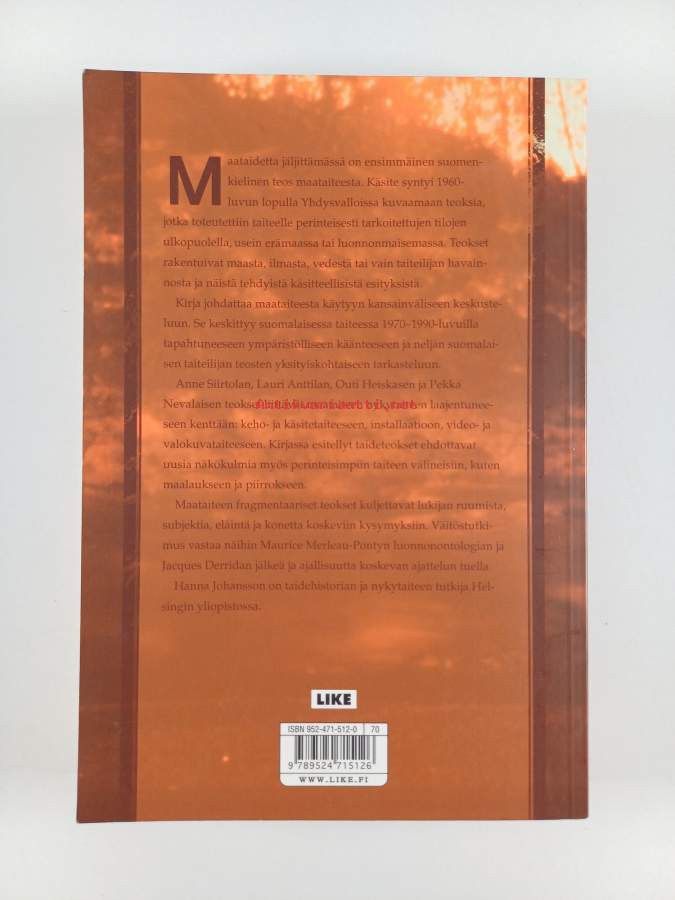 Asiasanat: taidefilosofia, käsitetaide, installaatiot, nykytaide, kehotaide, ympäristötaide, taiteentutkimus, maataide, minimalismi