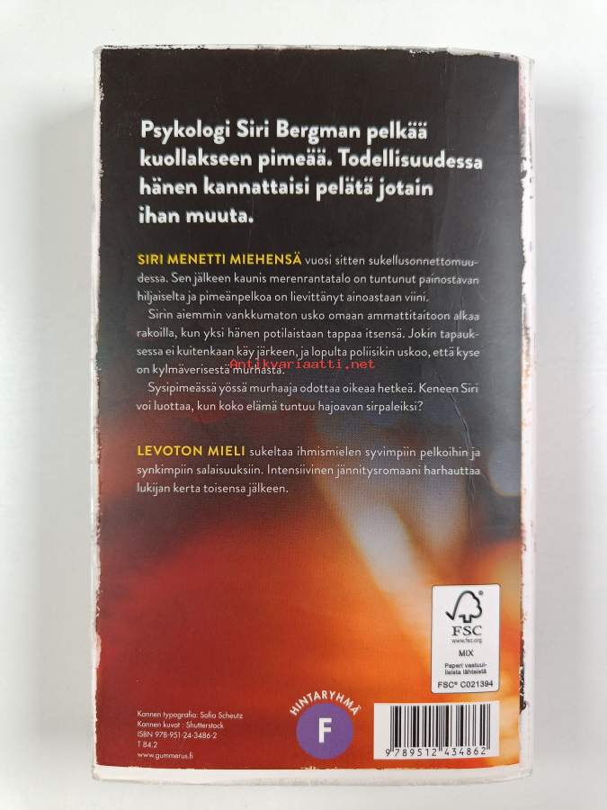 Muu(t) tekijä(t): Markus Myllyoja, Åsa TräffSarja: Siri Bergman -sarja [1Alkuteos: Någon sorts fridAsiasanat: onnettomuudet, aviopuolisot, murhaajat, psykologit, menetys, vainoaminen, pimeänpelko
