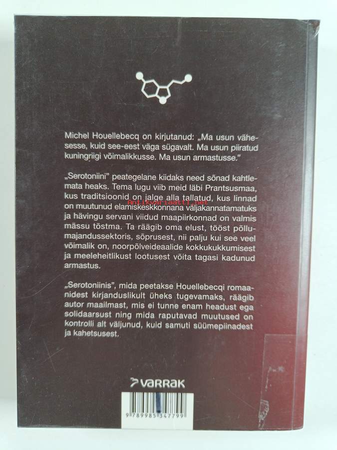Muu(t) tekijä(t): Indrek KoffAlkuteos: SérotonineAsiasanat: maatalouspolitiikka, seksuaalisuus, rakkaus, miehet, masennus, yhteiskuntakritiikki, keski-ikäiset, yksinäisyys, psyykenlääkkeet