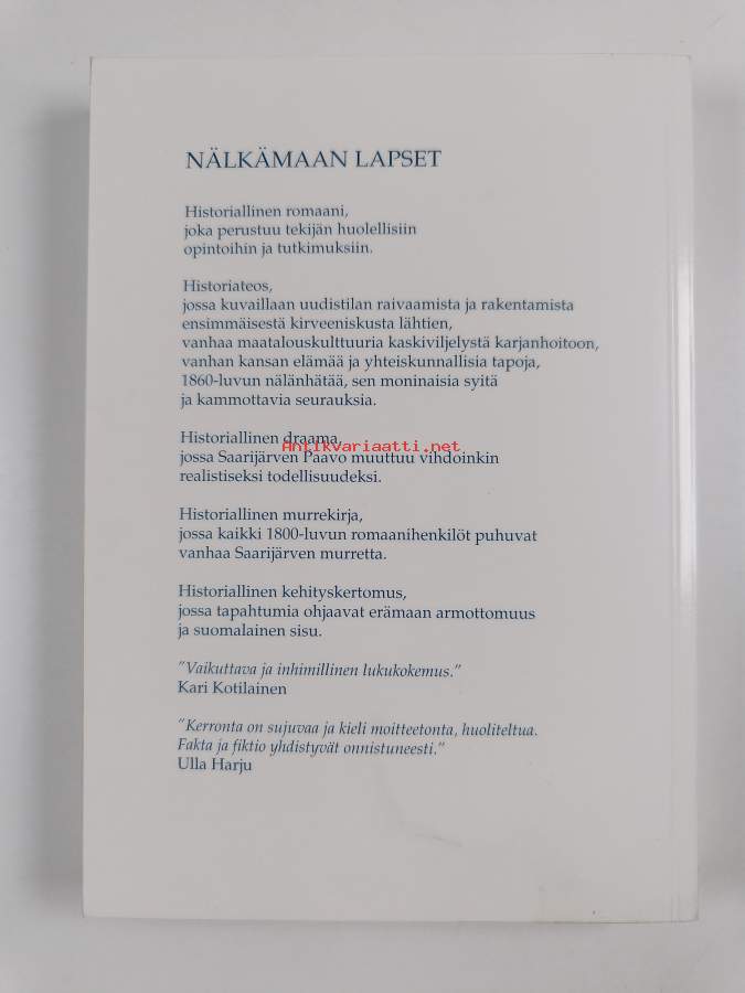 Merkinnät: omistajamerkintäSarja: Nälkämaan lapset 1 osa; historiallinen romaaniAsiasanat: suomenkielinen kirjallisuus