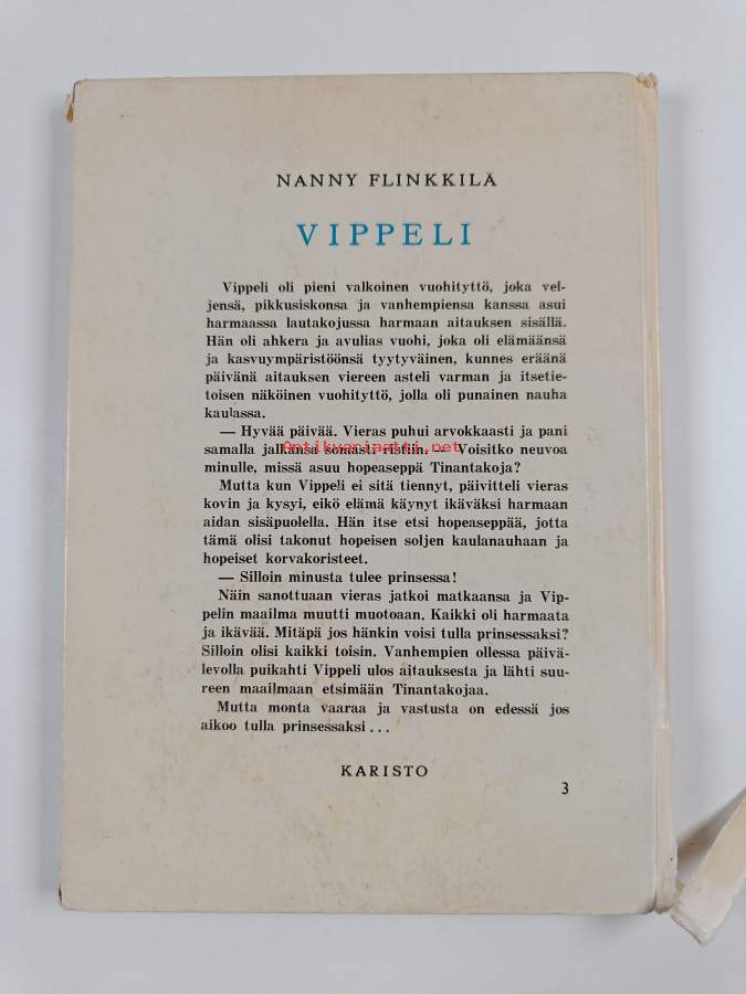 Tyydyttävä. Pientä repeämää selkämyksen alareunassa, hieman tahraisuutta, hieman kulumaa reunoilla ja kulmissa, selkämyksessä hieman vinoutta