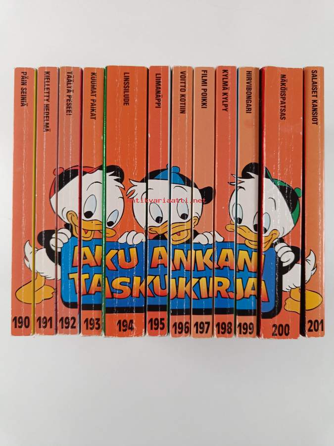 osasta 197 irronnut nippu sivuja mutta tallessa, osista 198 ja 200 haljennut liimaus ja näkyvissä yhdestä kohtaa, kaikkia kuntohuomautuksia ei esiinny kaikissa osissa