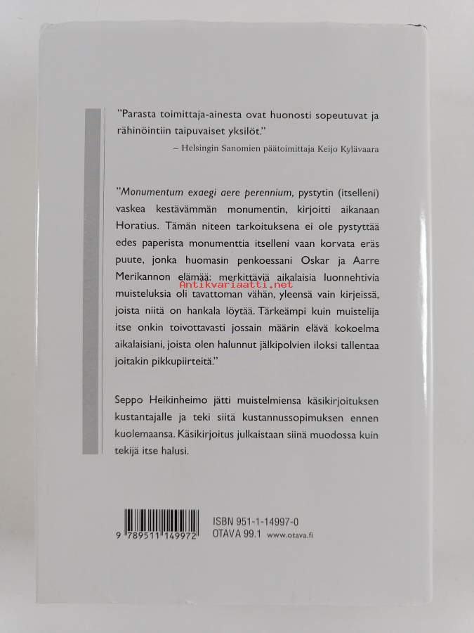 Hyvä. Tarkempi kuntoluokka: K3+ ; Pienoista kolhua selkämyksen päissä, pienoista kulumaa kansissa. Kansipaperin kunto: jonkin verran kulumaa/pienoisia repeämiä