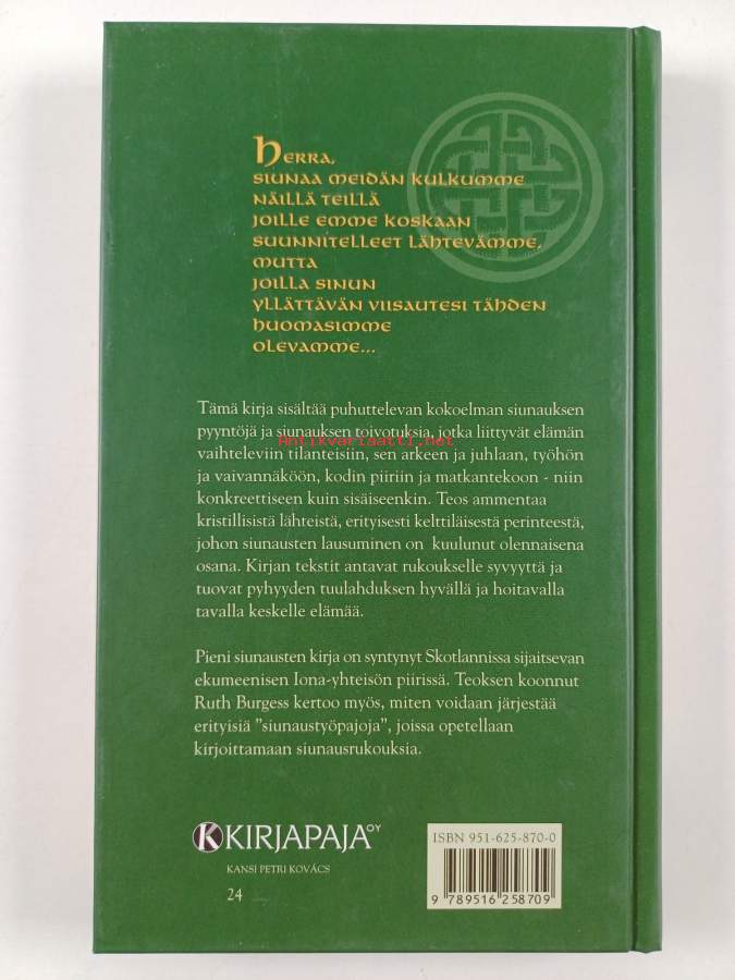 Muu(t) tekijä(t): Riitta VirkkunenAlkuteos: A book of blessing and how to write your ownAsiasanat: siunaukset