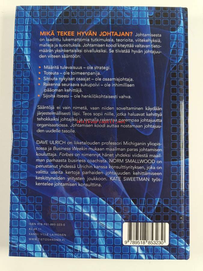 Muu(t) tekijä(t): Margit Heinämäki, Kate Sweetman ym.Merkinnät: omistajamerkintäSarja: Johtaja 1; Business booksAlkuteos: The leadership code : five rules to lead byAsiasanat: johtaminen, johtajat, johtajuus, henkilöstöjohtaminen, strateginen johtaminen, sitouttaminen, osaamisen johtaminen