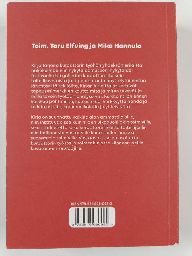 Muu(t) tekijä(t): Taru Elfving, Mika HannulaAsiasanat: taidenäyttelyt, kuvataide, nykytaide, näyttelysuunnittelu, kuraattorit, näyttelytoiminta, kuratointi