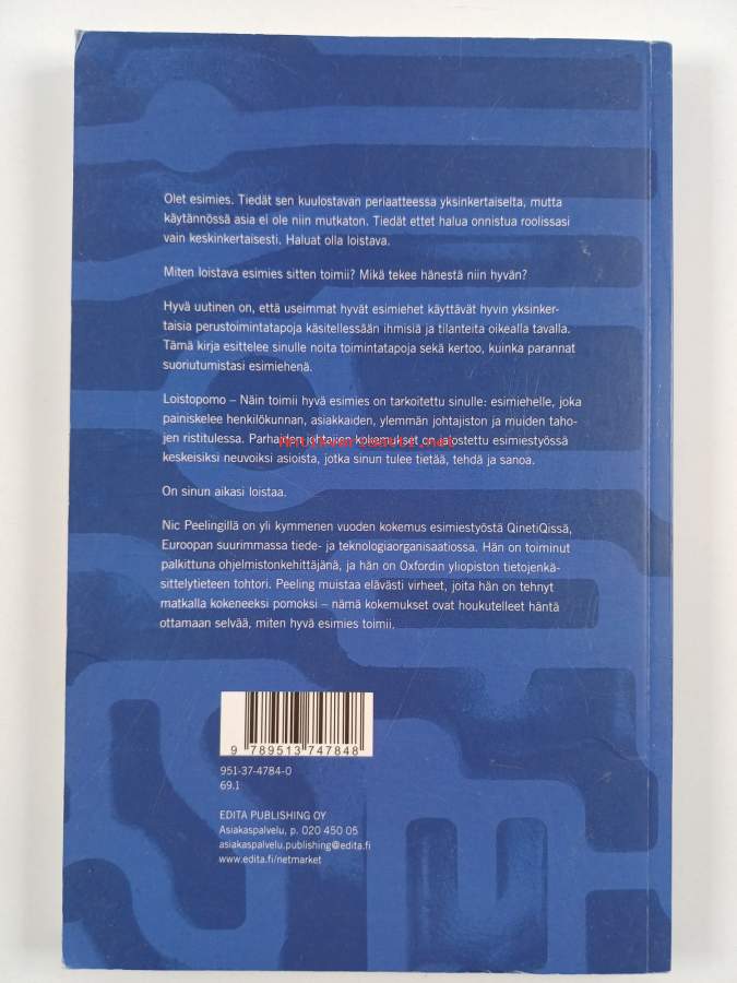 Merkinnät: omistajamerkintä leikattu pois etulehden ylälaidastaAlkuteos: Brilliant manager : what the best managers know, do and sayAsiasanat: johtaminen, esimiehet, henkilöstöjohtaminen, tiimit
