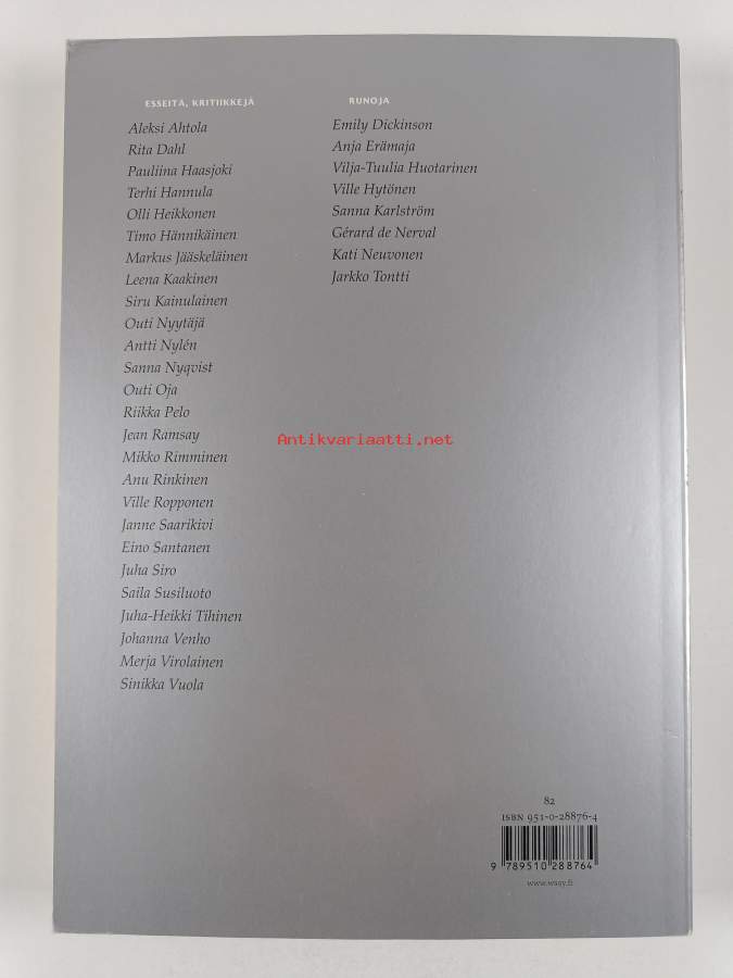 Muu(t) tekijä(t): Outi Nyytäjä, Saila Susiluoto ym.Asiasanat: kirjallisuudentutkimus, runot, lyriikka, kirja-arvostelut