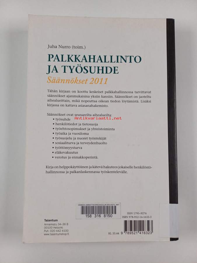 Muu(t) tekijä(t): Juha NurroAsiasanat: koulutus, lainsäädäntö, verotus, ennakkoperintä, työaika, työsuhde, työsuojelu, vuosiloma, tapaturmavakuutus, työeläkkeet, työttömyysturva, työvoima, palkkahallinto, sairausvakuutus