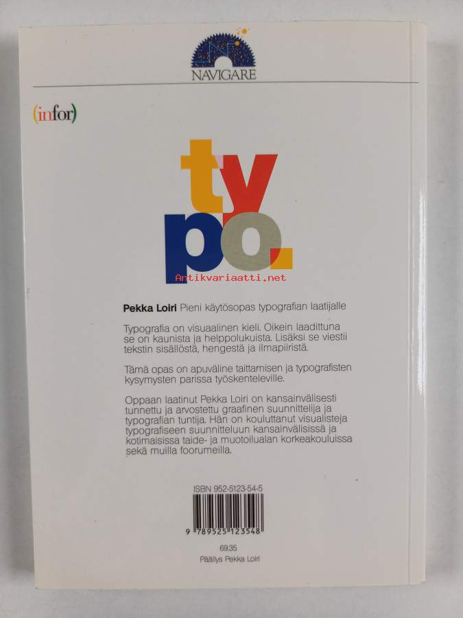 Merkinnät: omistajamerkintä leikattu pois etulehden ylälaidastaSarja: NavigareAsiasanat: visuaalinen viestintä, graafinen suunnittelu, typografia, kirjasintyylit, taitto, kirjasinlajit, kirjaimet, sommittelu
