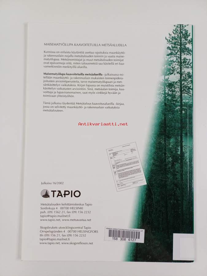 Sarja: Julkaisusarja / Tapio 16Asiasanat: lainsäädäntö, metsänkäsittely, maankäyttö- ja rakennuslaki, lagstiftning, planläggning, markanvändnings- och bygglag, skogshantering, metsätalousmaa, skogsbruksmark, kaavoitus (maankäyttö)
