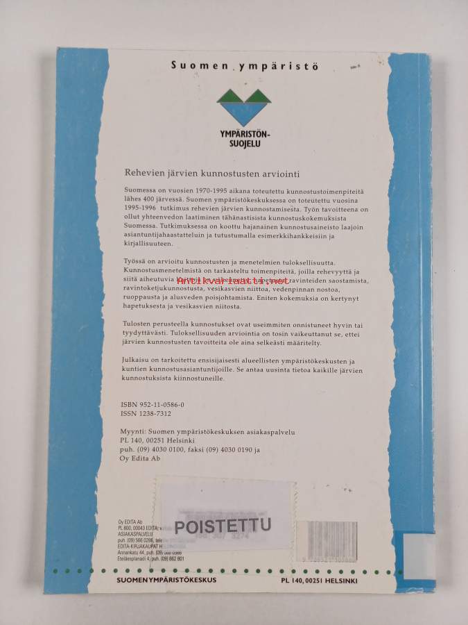 Sarja: Suomen ympäristö 115Asiasanat: järvet, vesistöjen kunnostus, kunnossapito, rehevöityminen, underhåll (skötsel), sjöar, restaurering av vattendrag, eutrofiering, ekosysteemit (ekologia), ekosystem (ekologi)