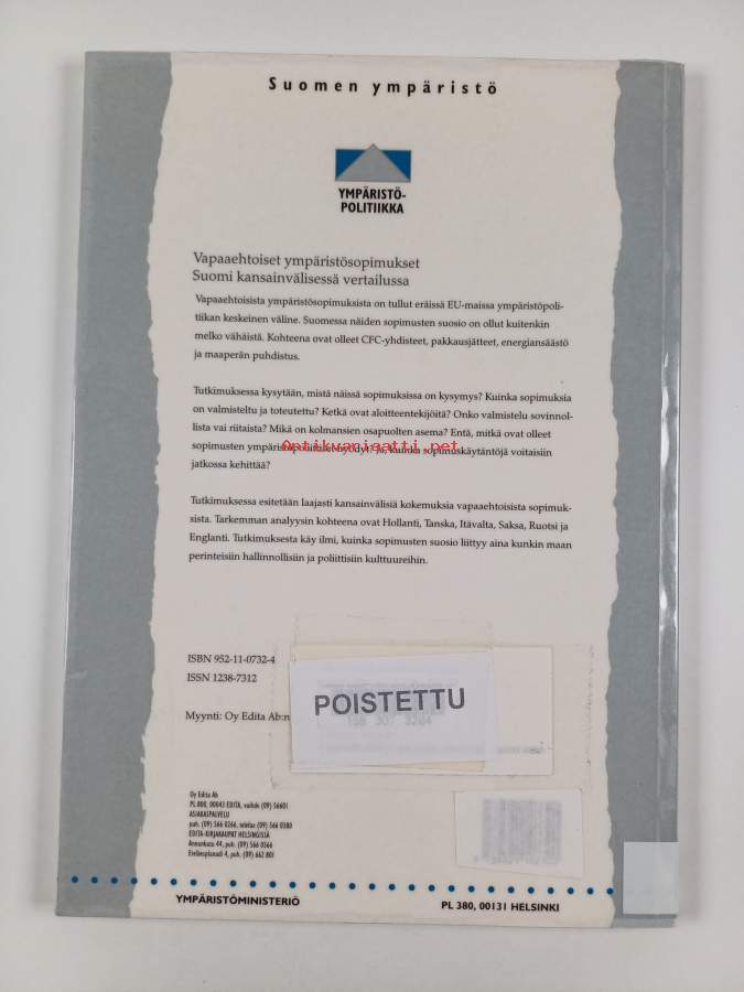 Muu(t) tekijä(t): Outi TeittinenSarja: Ympäristöpolitiikka; Suomen ympäristö 412Asiasanat: ympäristönsuojelu, ympäristöoikeus, sopimus