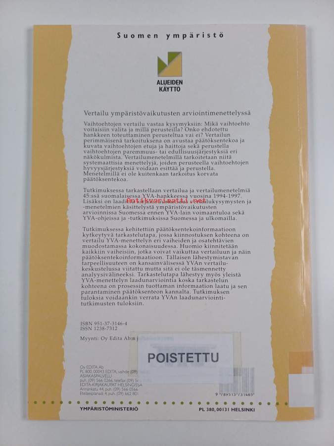 Sarja: Alueiden käyttö; Suomen ympäristö 391Asiasanat: arviointi, ympäristövaikutukset, tutkimusmenetelmät