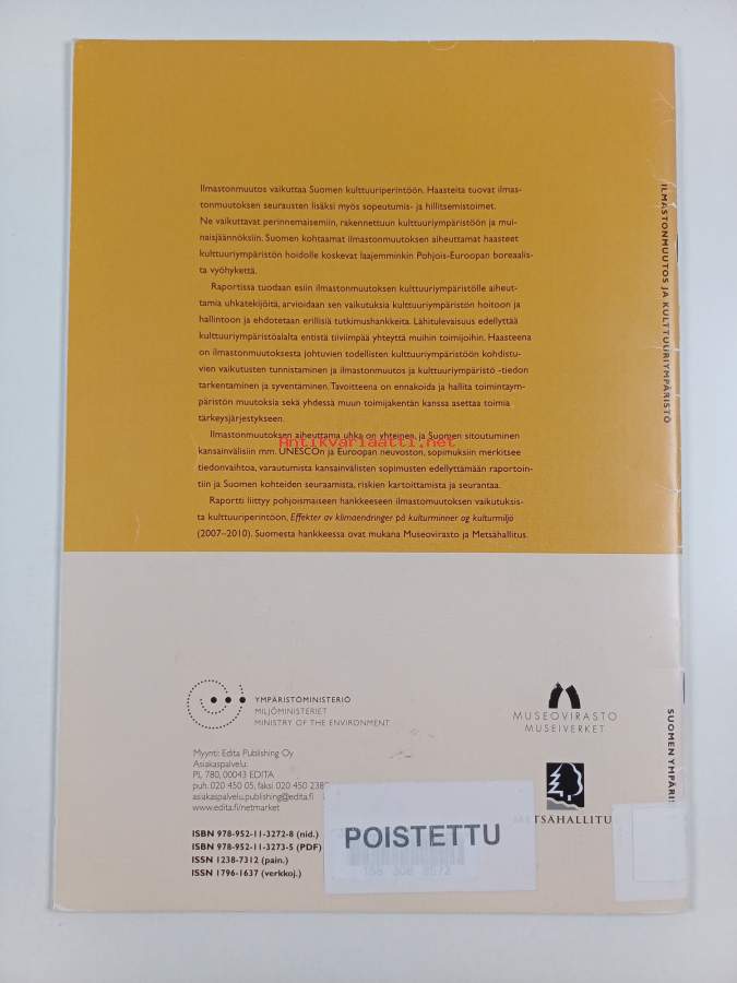 Ilmastonmuutos ja kulttuuriympäristö : tunnistetut vaikutukset ja haasteet Suomessa