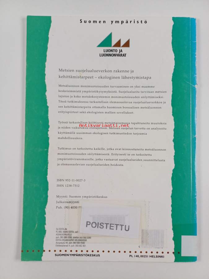 Sarja: Luonto ja luonnonvarat; Suomen ympäristö 16Asiasanat: ekologia, biodiversiteetti, metsiensuojelu