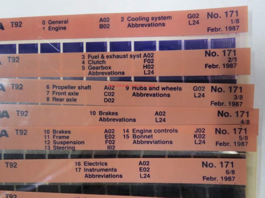 Scania T92 nr 171 8/8, Febr. 1987 Parts Catalogue - Reservdelskatalog - Ersatzteilkatalog - Catalogue de Piéces - mikrofilmi