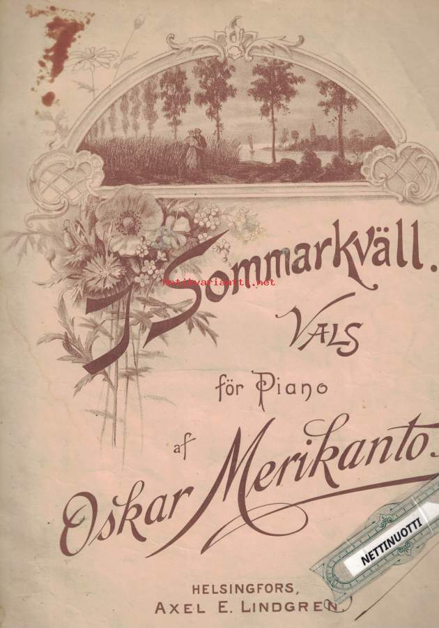 Kesäilta.Nuotti ollut joskus yhteissidoksessa ja silloin marginaaleja kavennettu, koko n. 25,5 x 32 cm.- Postipaketti