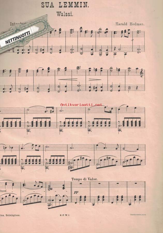 Sua lemmin, Valssi. Pianolle säveltänyt Harald Hedman
