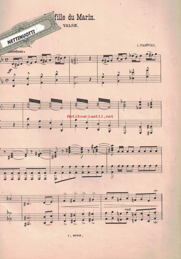 Pianolle.Nuotti ollut joskus yhteissidoksessa ja silloin marginaaleja kavennettu, koko n. 25,5 x 32 cm.-Postipaketti.