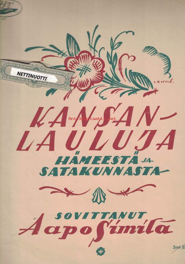 Kansanlauluja Hämeestä ja Satakunnasta. Sovittanut Aapo Similä
