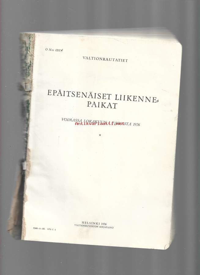 Epäitsenäiset liikennepaikat : voimassa lokakuun 1 päivästä 1936Kirja runsaasti käsinmerkittyjä lisätietoja Valtionrautatiet 1936.
