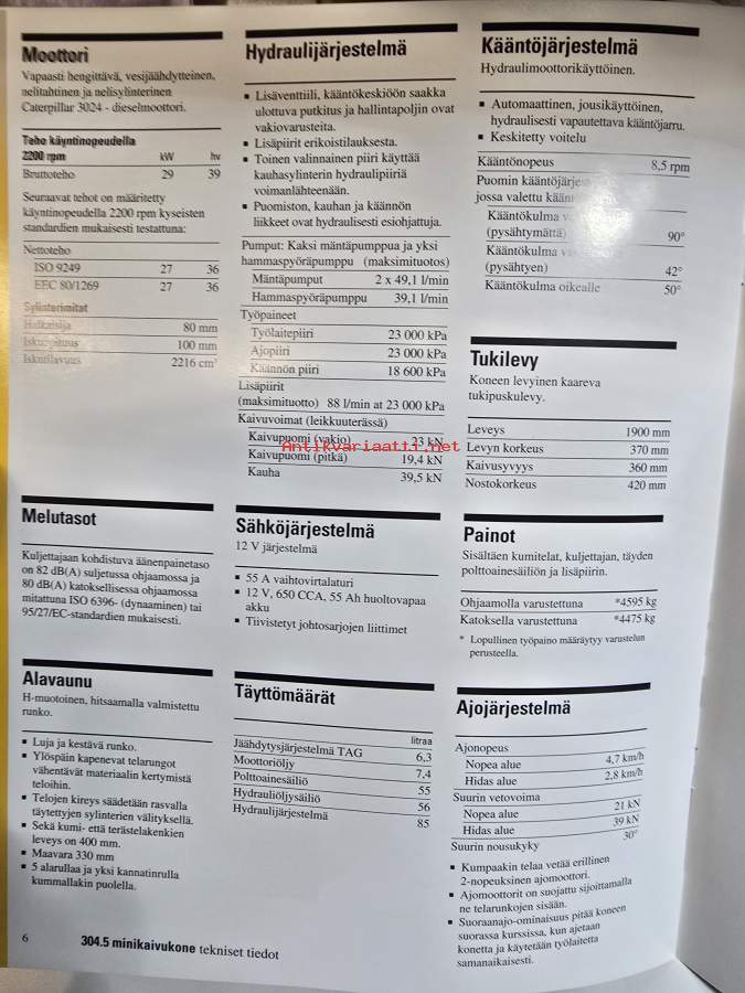 Cat 304.5 Mini kaivukone myyntiesite.